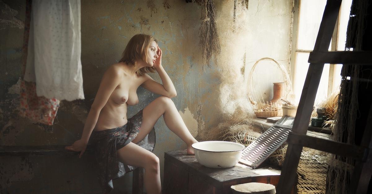 Голые девушки в деревенской бане