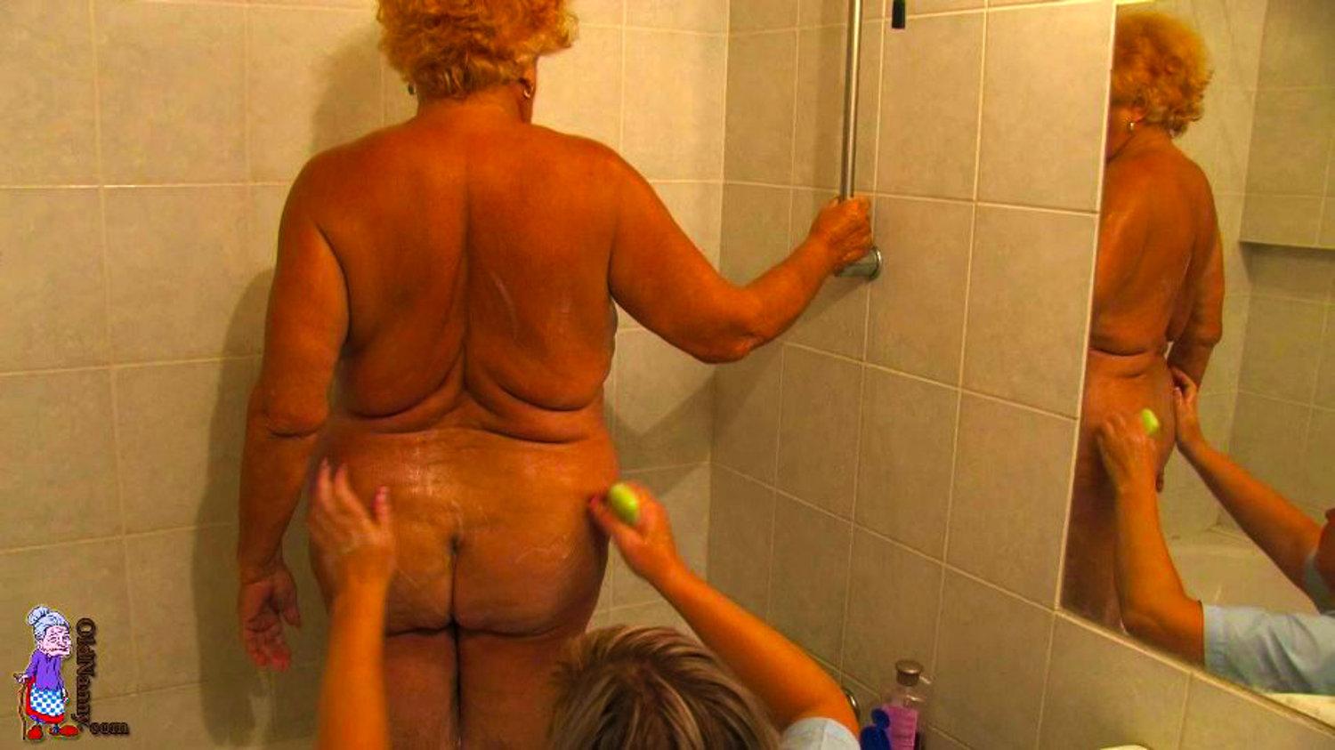 Grandma yana 75 washes her sweet female charms in the shower голая