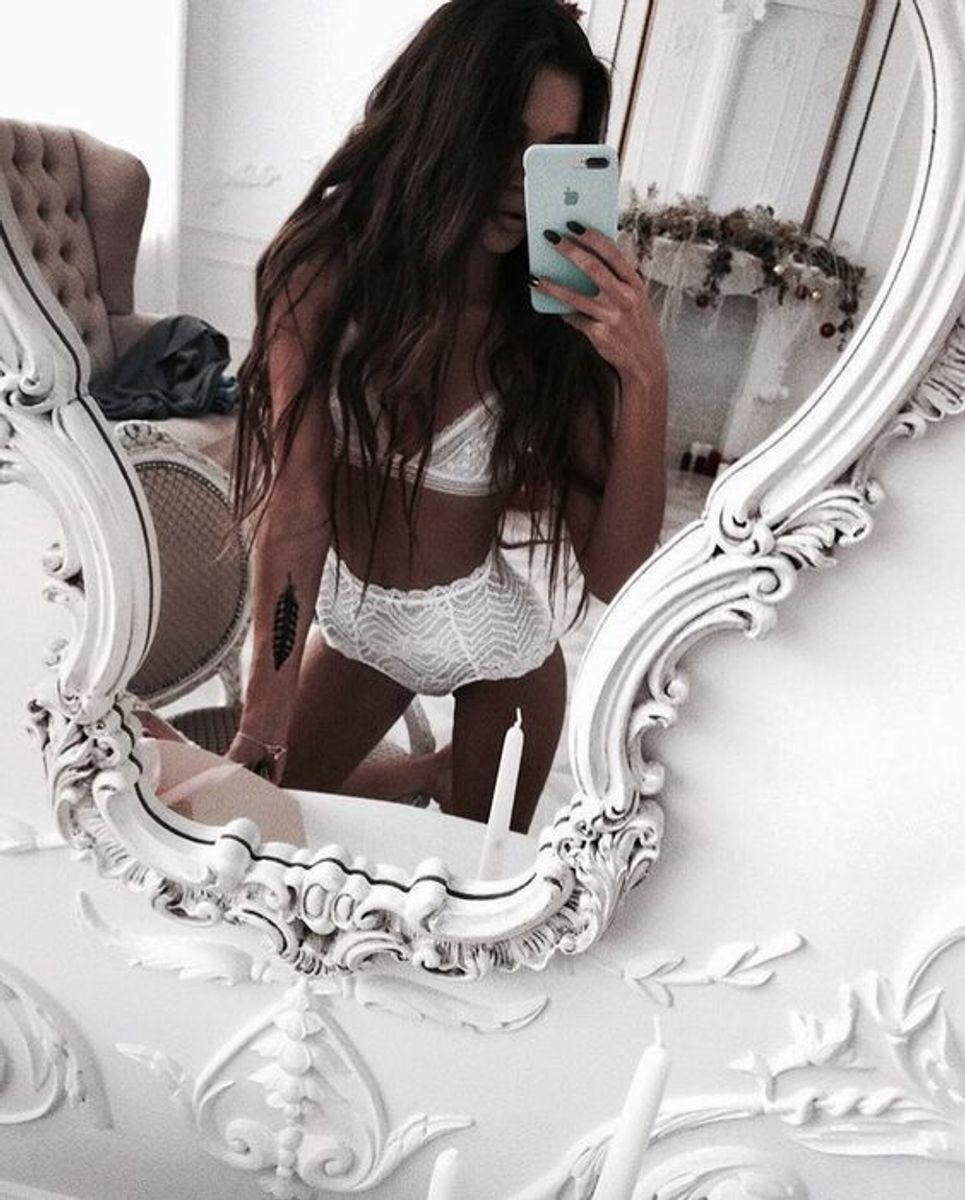 Девушка в белье перед зеркалом