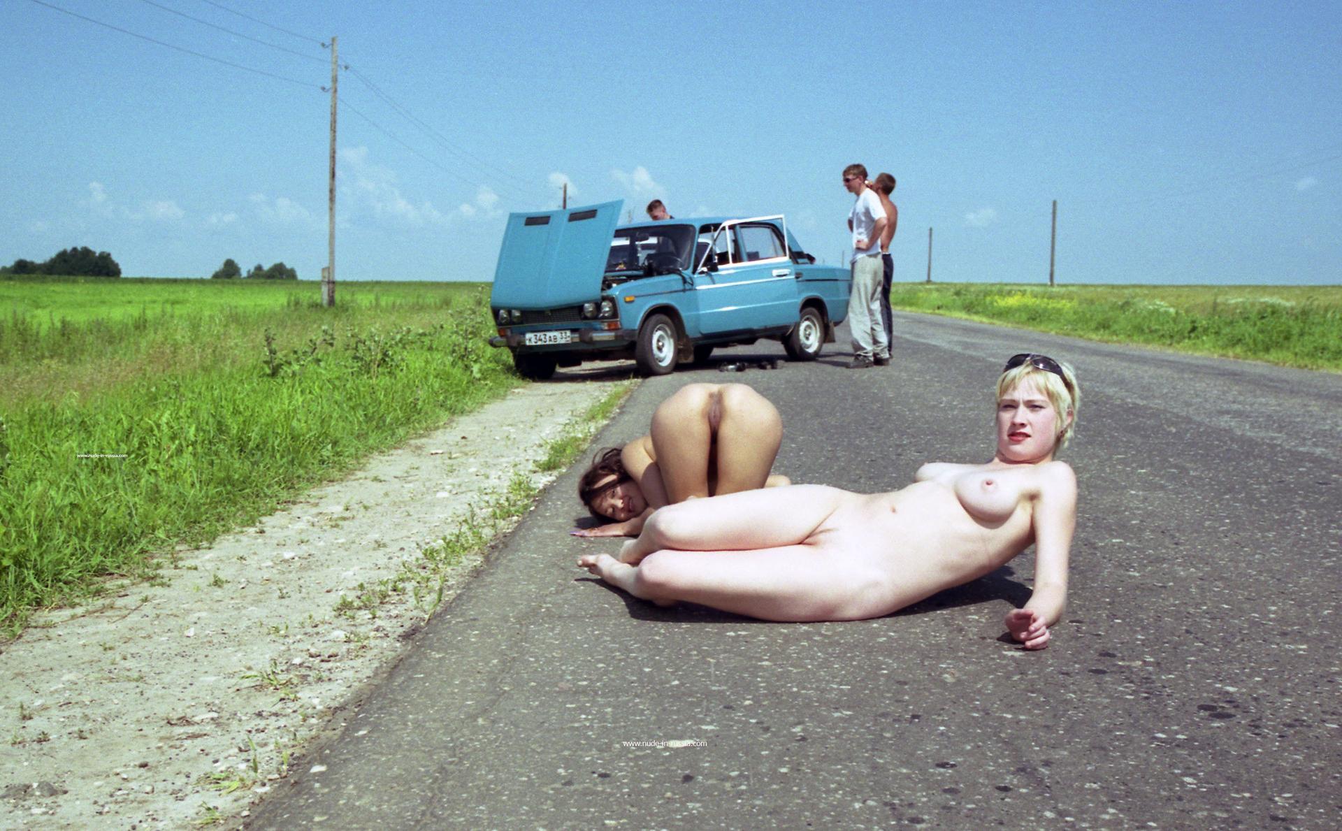 Голые телки на дороге