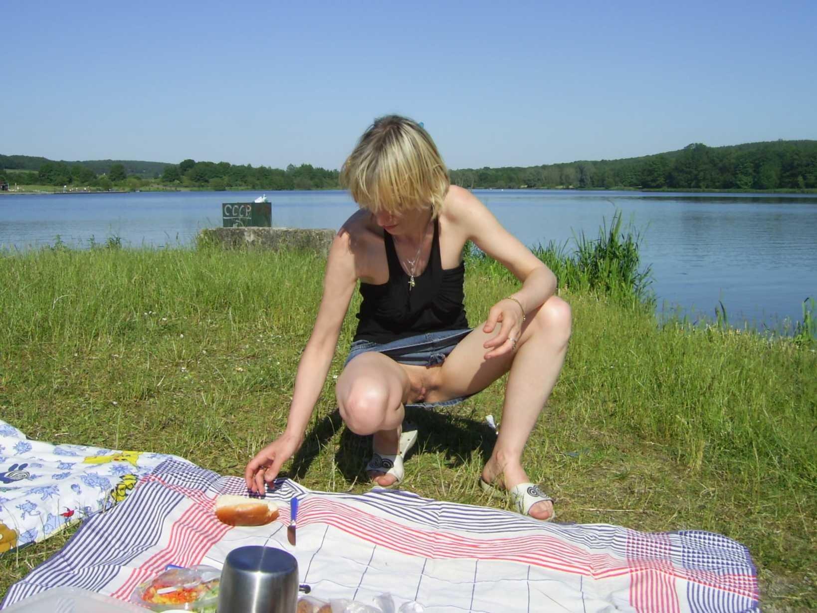 Женщины без трусов на природе