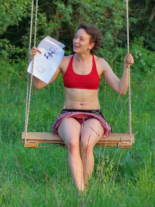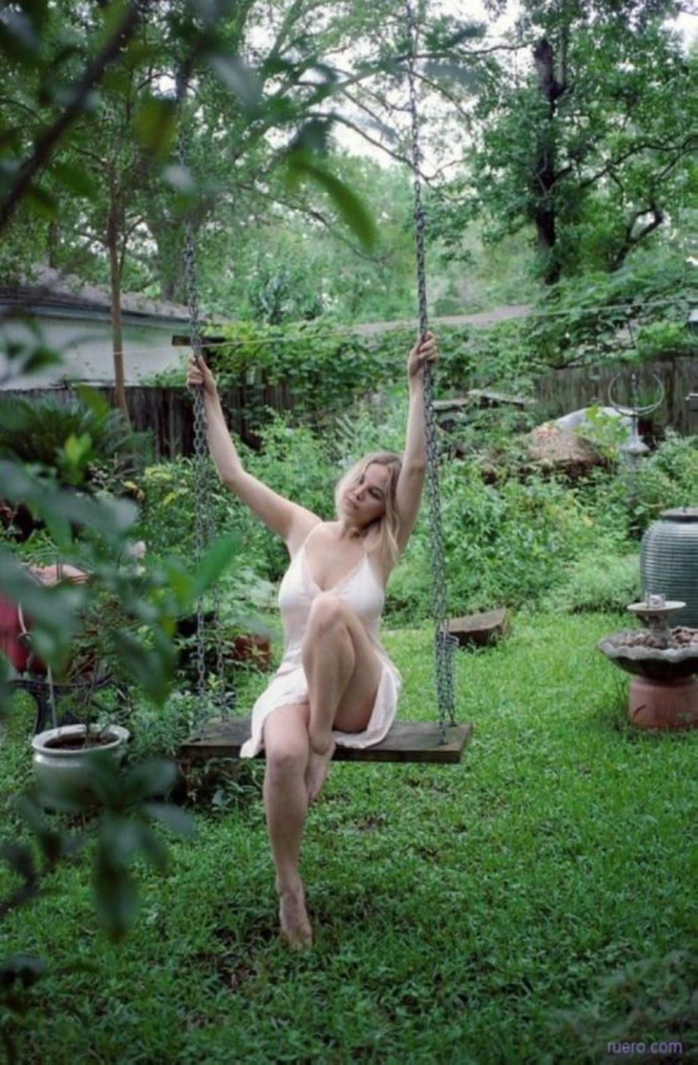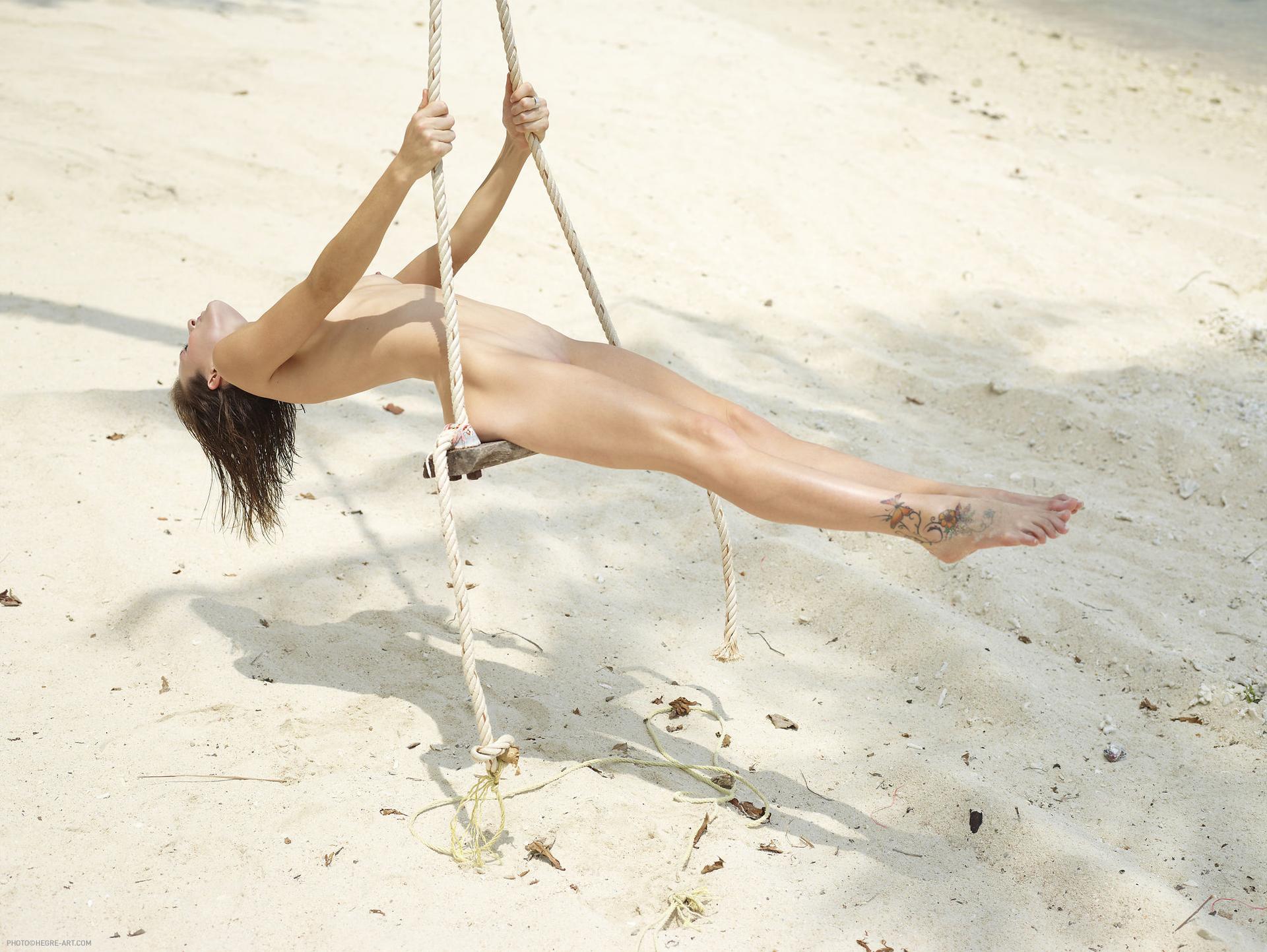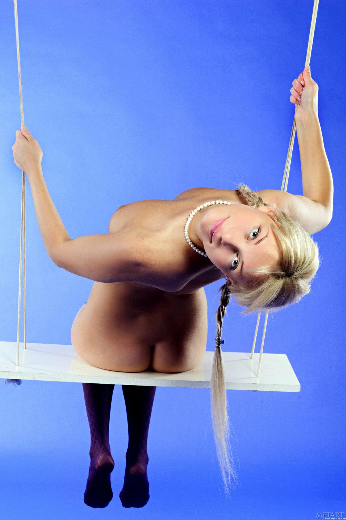 Голая качается на качелях