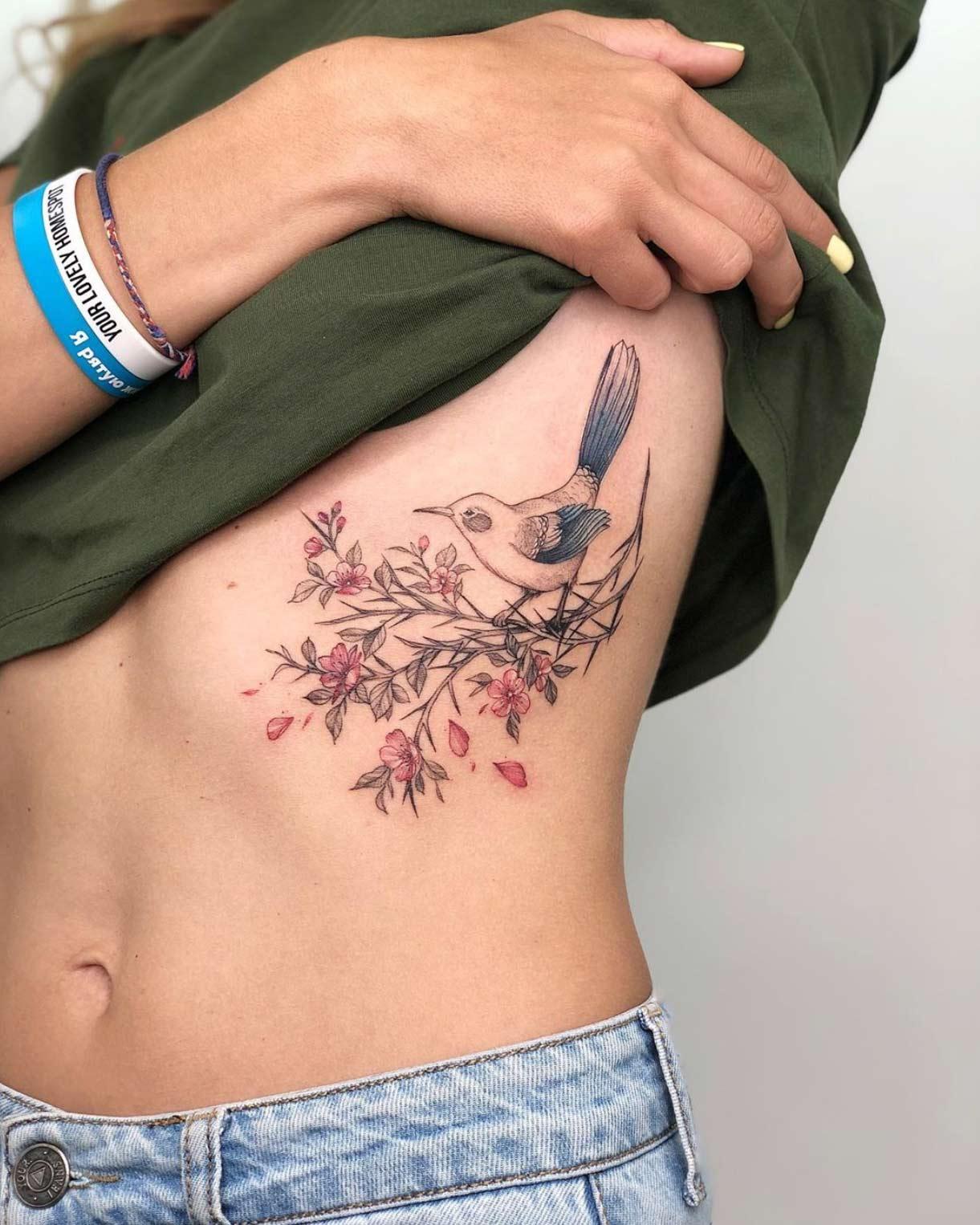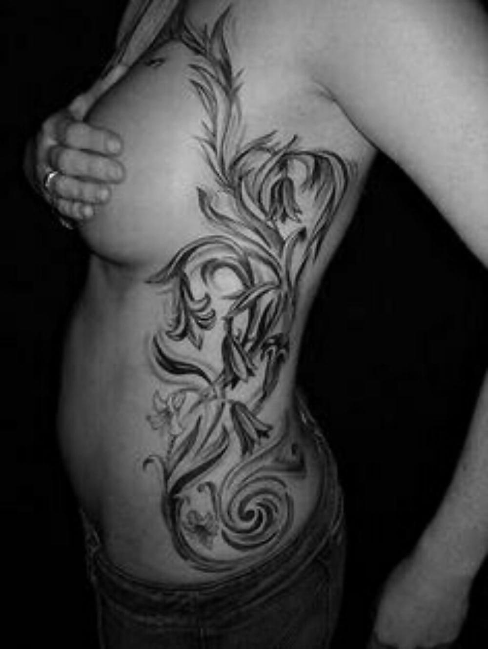 Татуировка на ребре у девушек