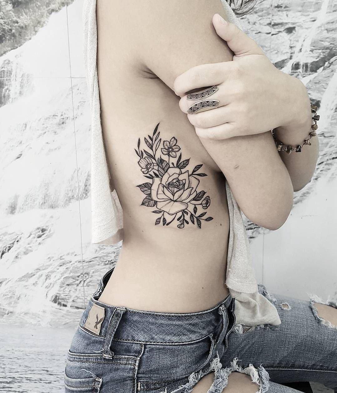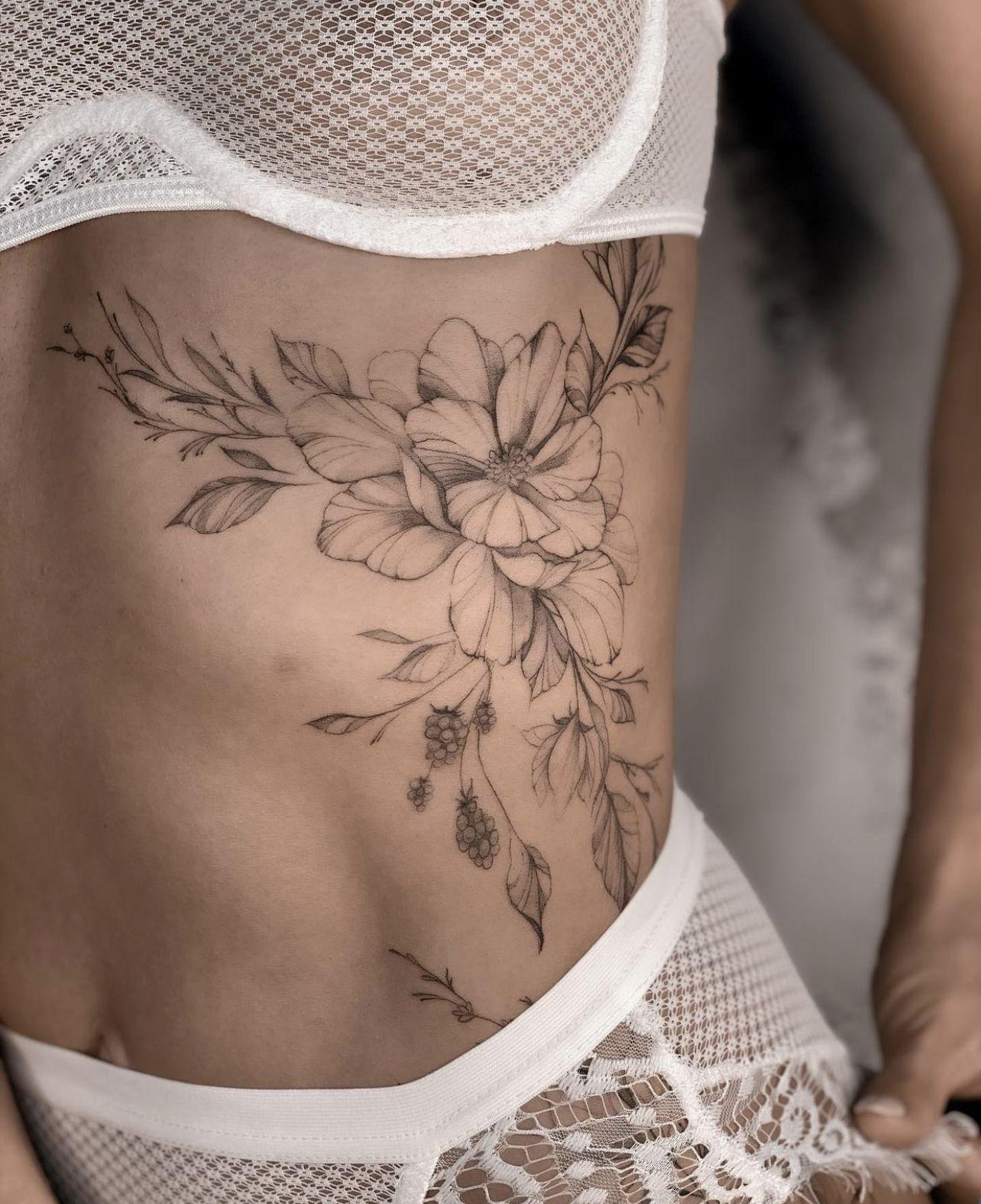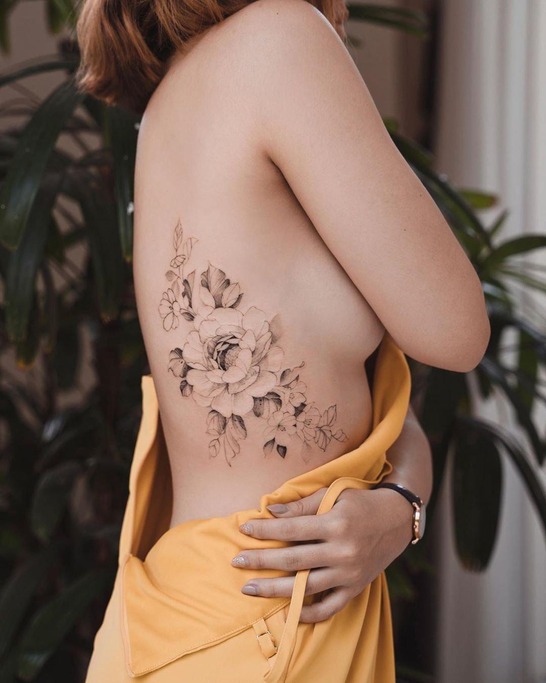 Татуировка на рёбрах для девушек