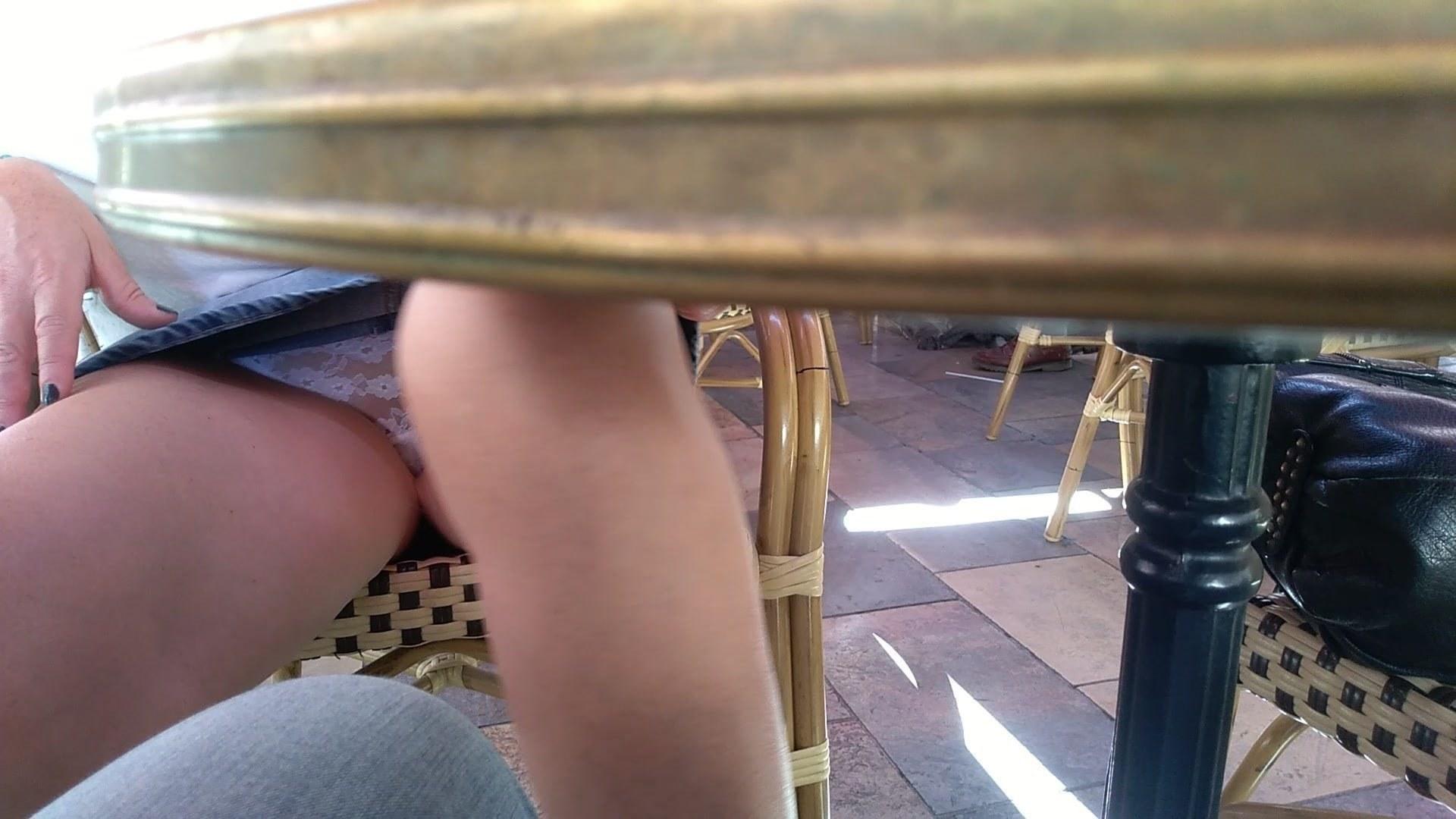 Белые трусики под юбкой