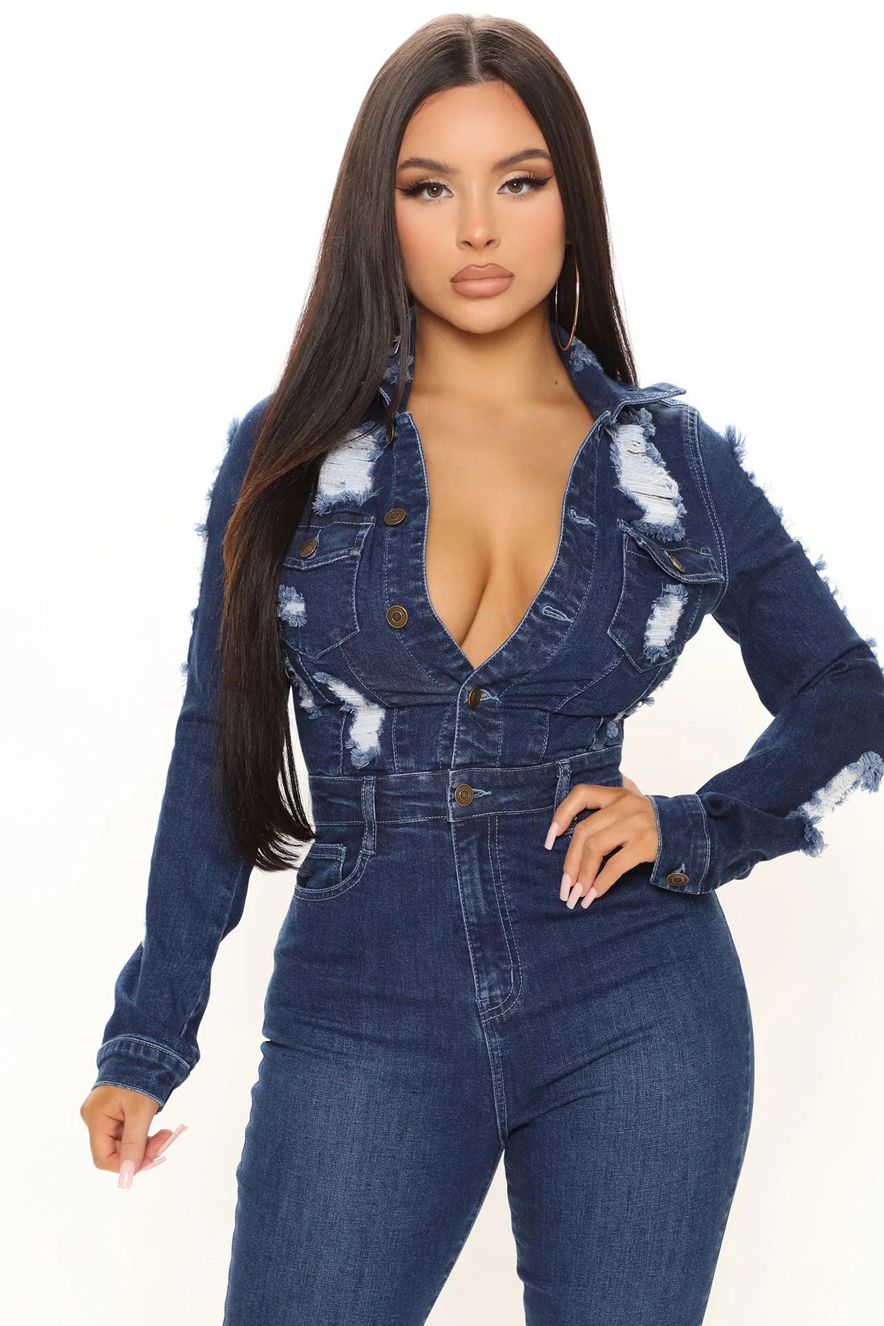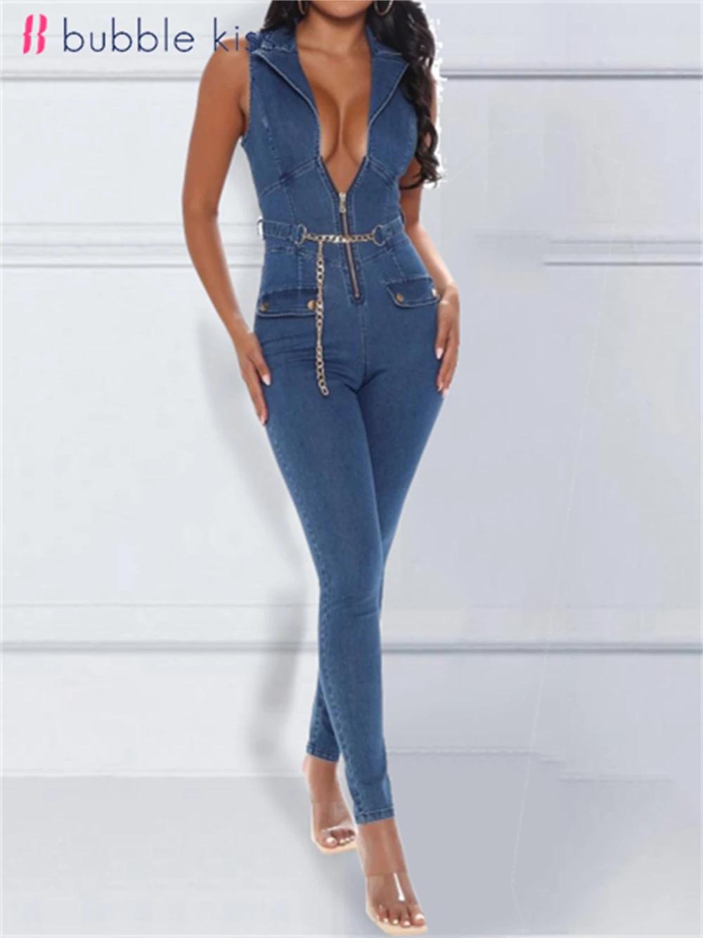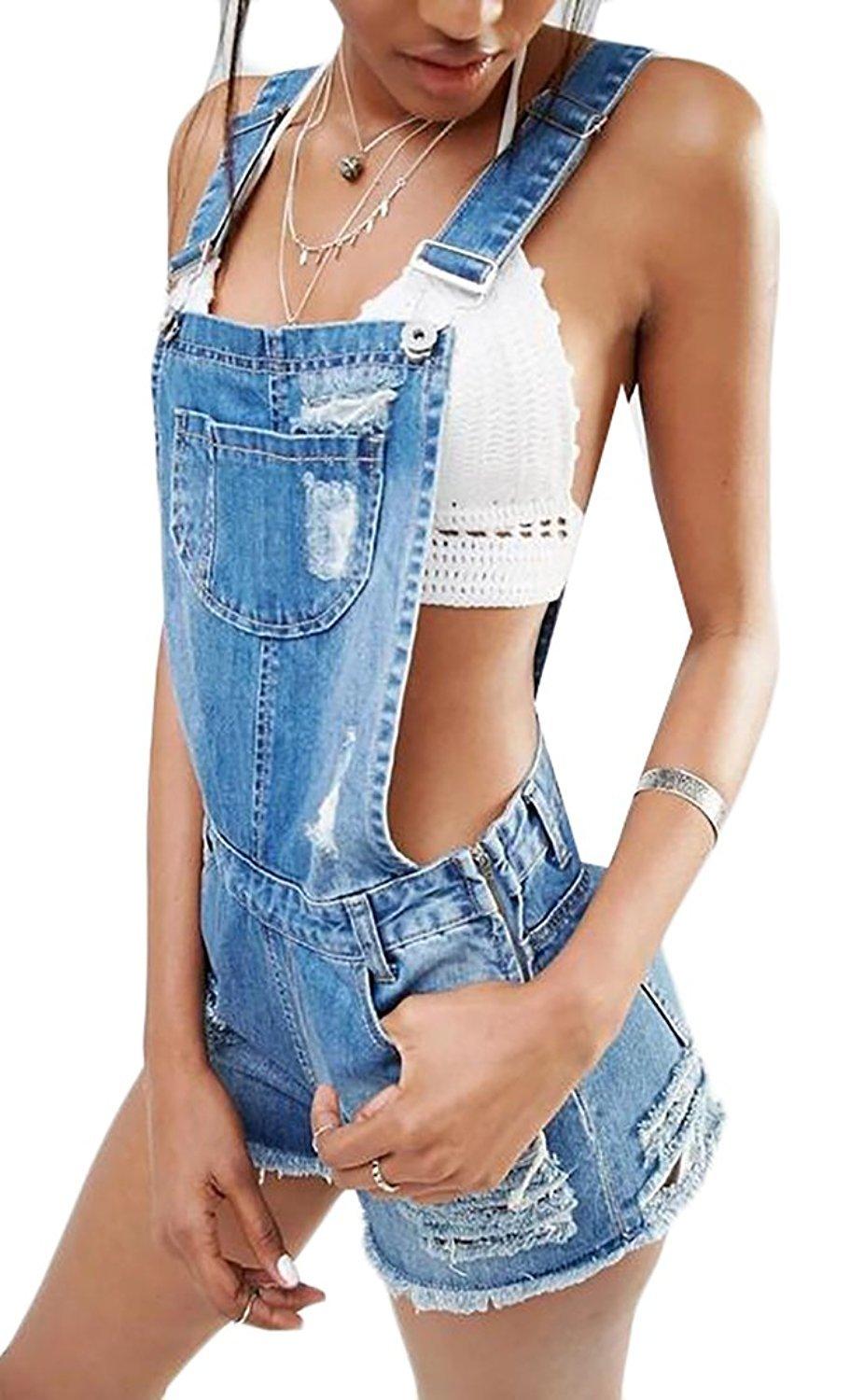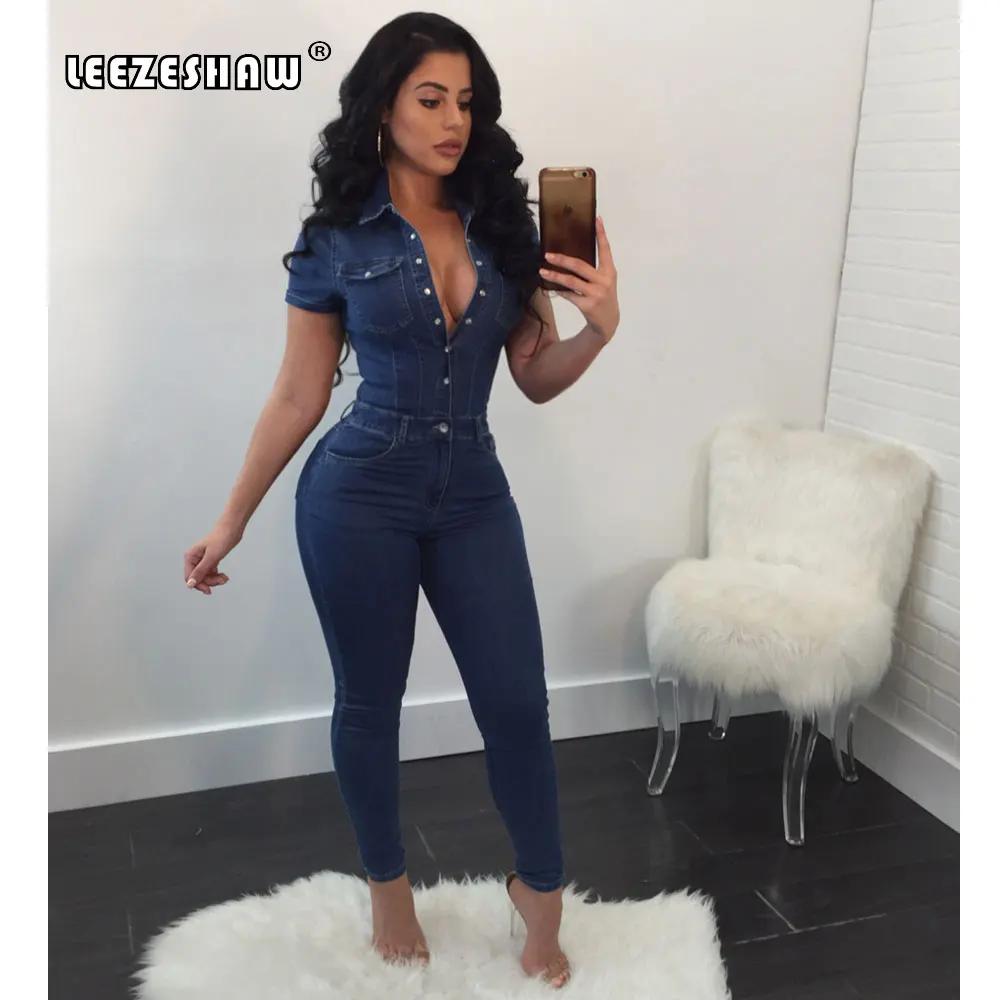 Джинсовые женские комбинезоны (137 фото)