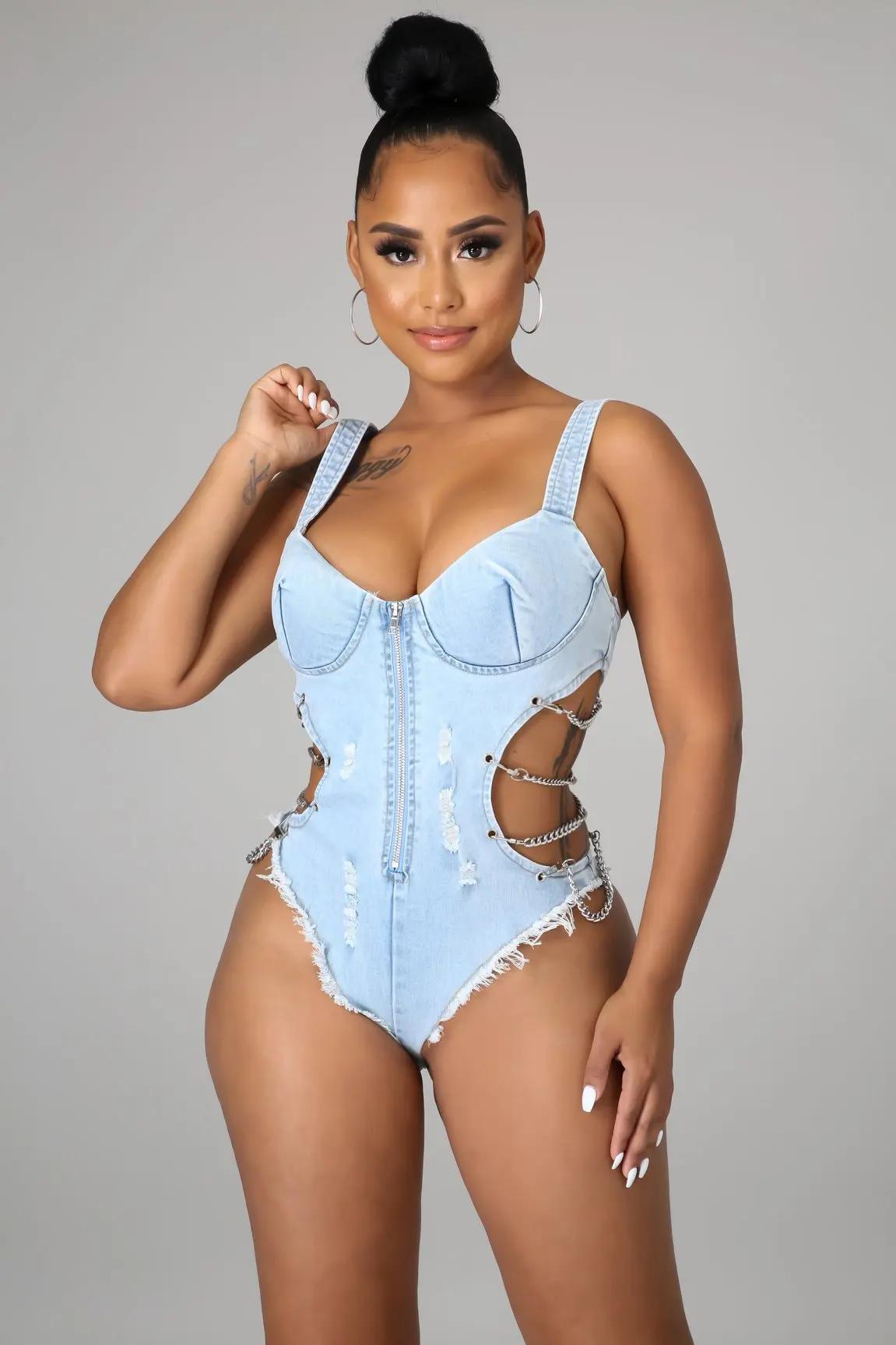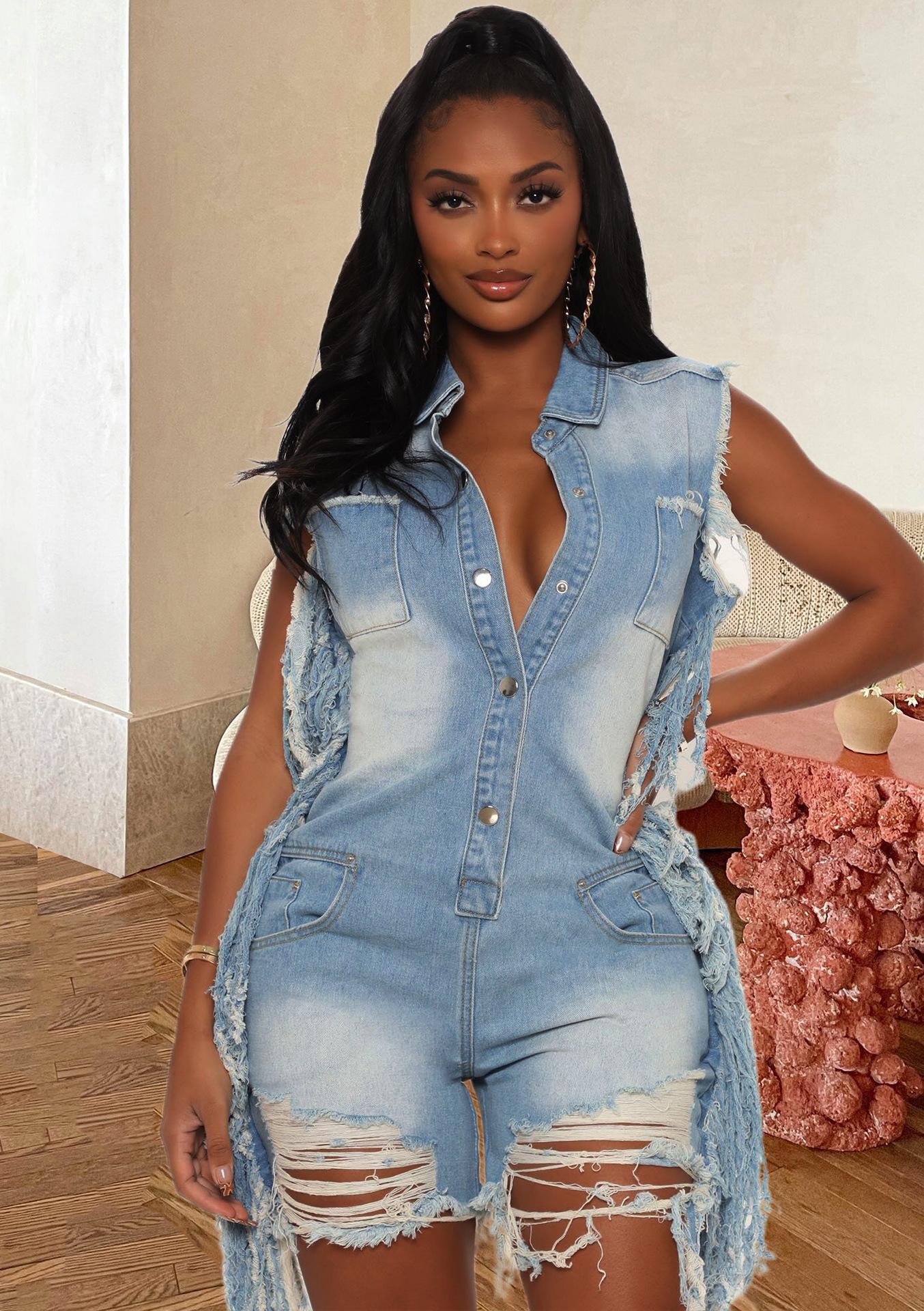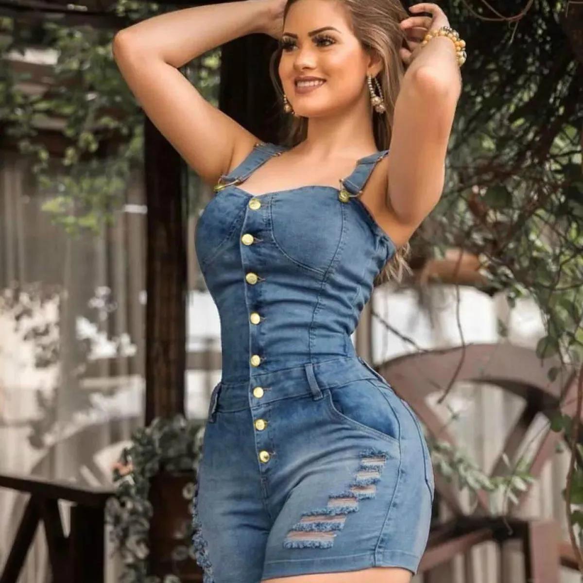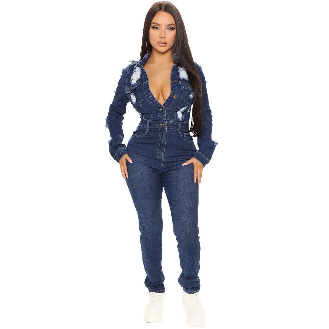 Джинсовые женские комбинезоны (137 фото)