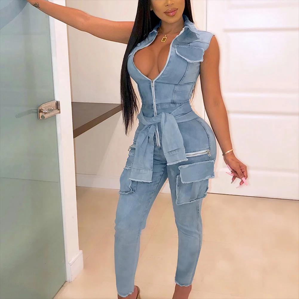 Женский джинсовый комбинезон