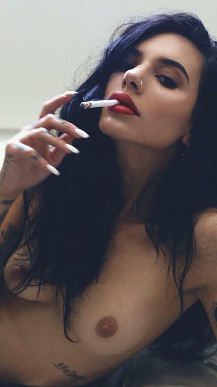 Голая брюнетка с сигаретой