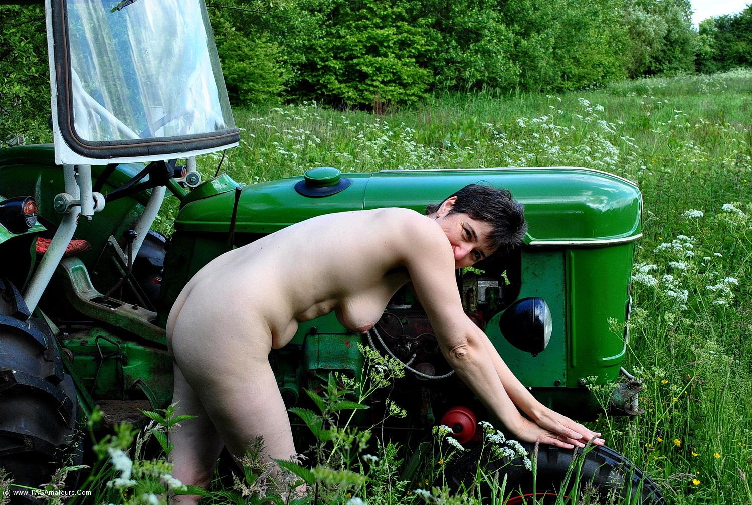 Девушки голышом и трактор