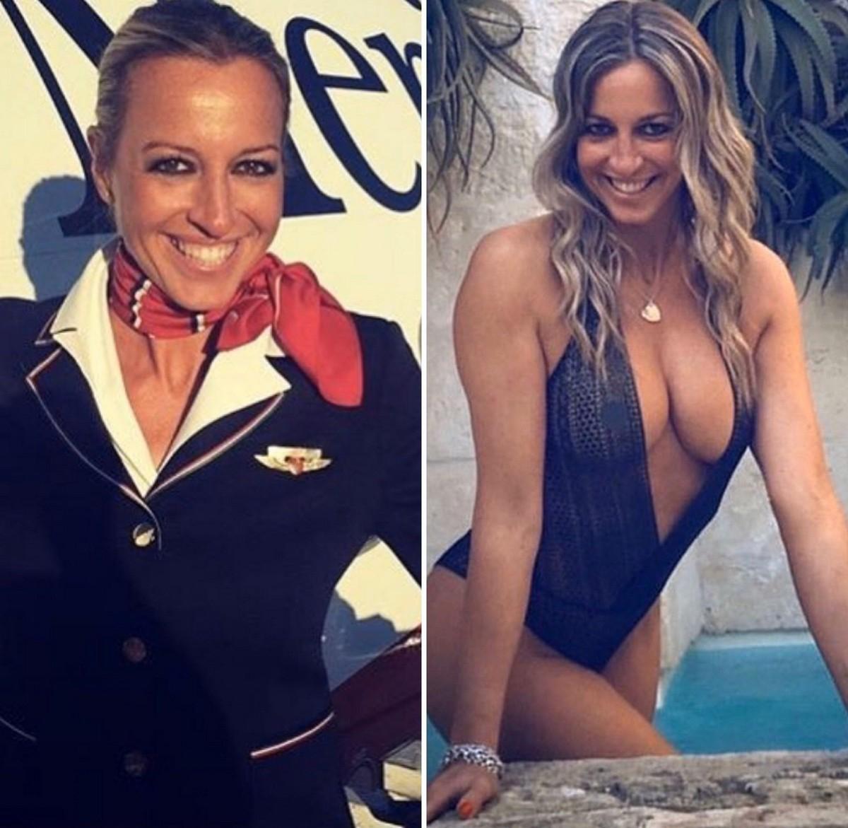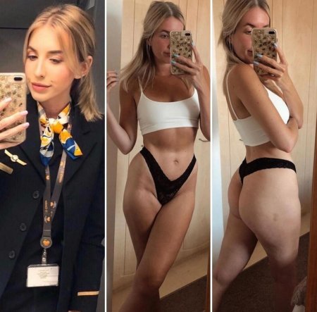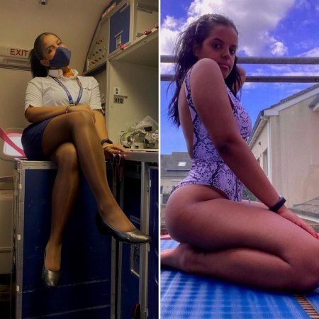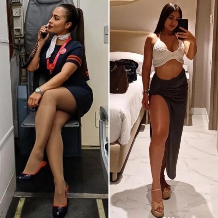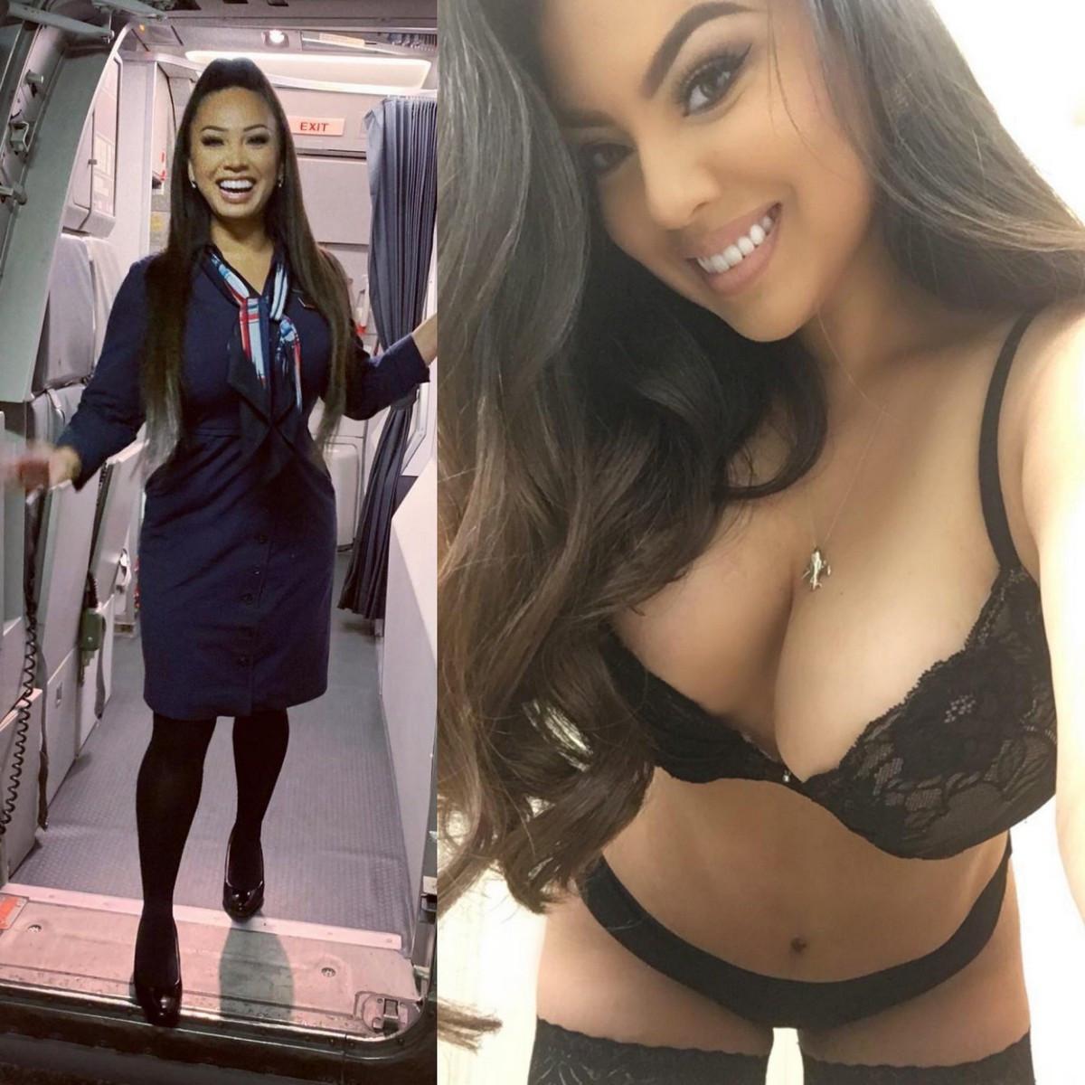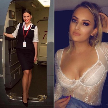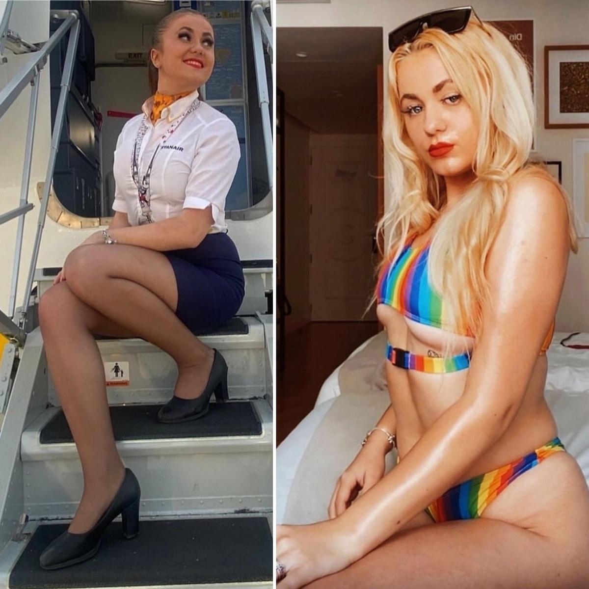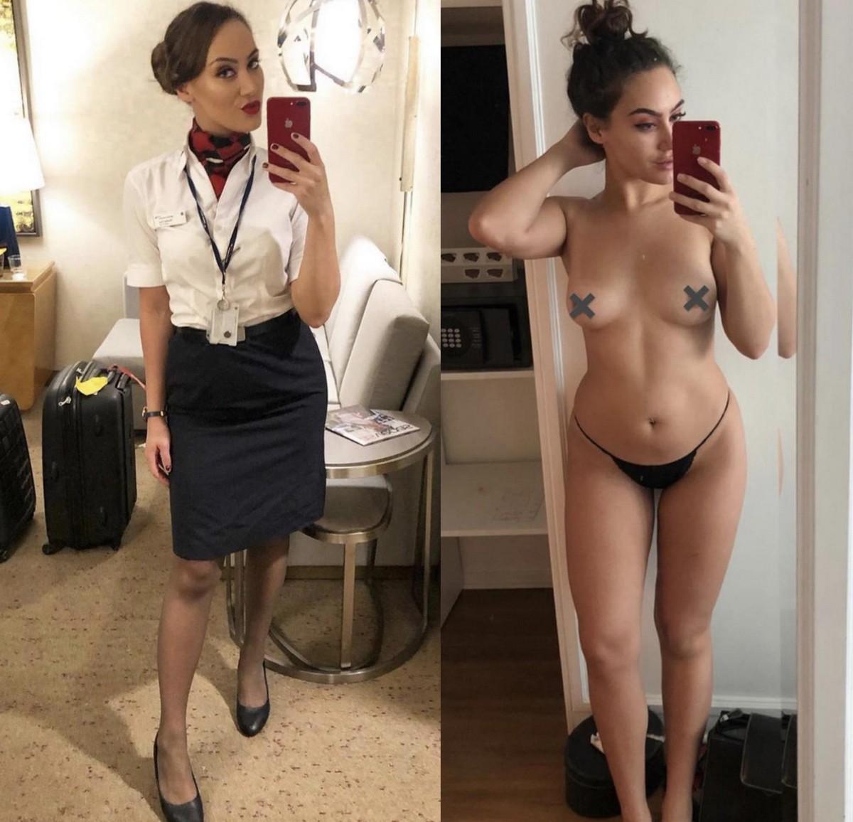 Стюардессы одетые и без одежды