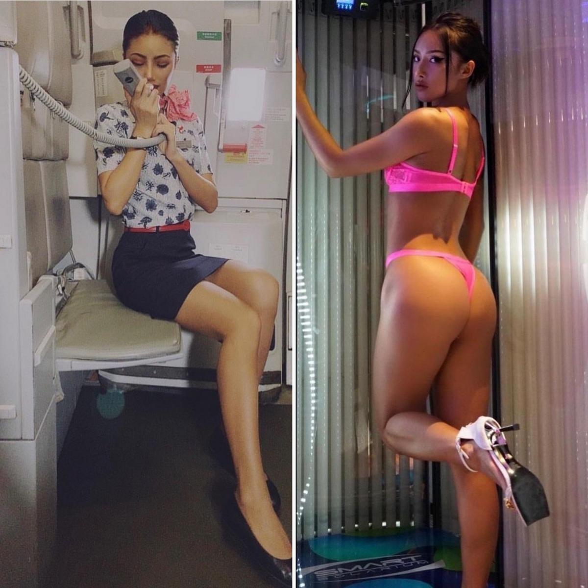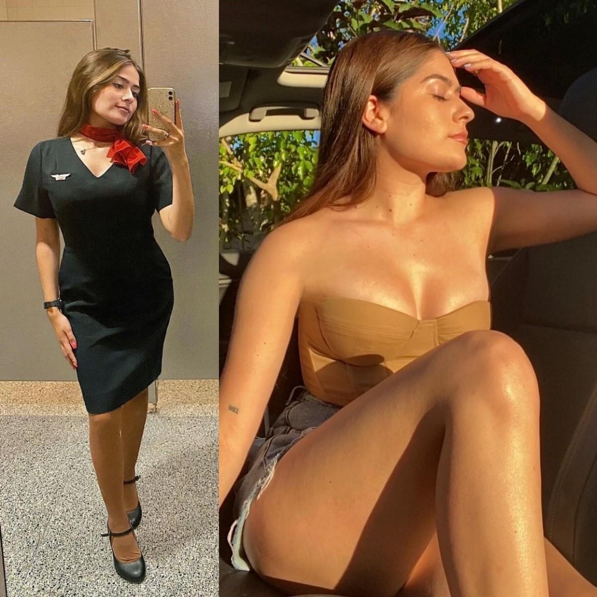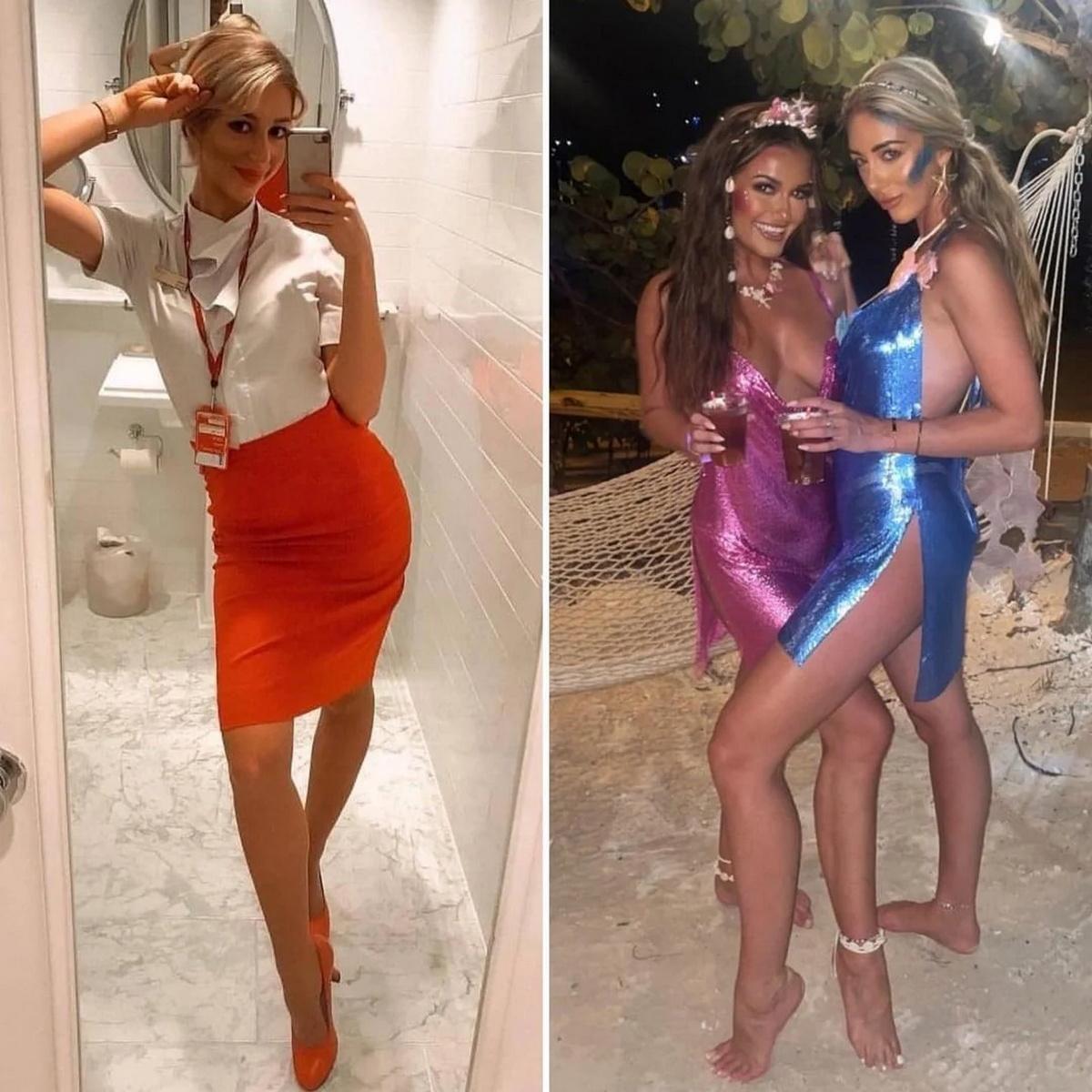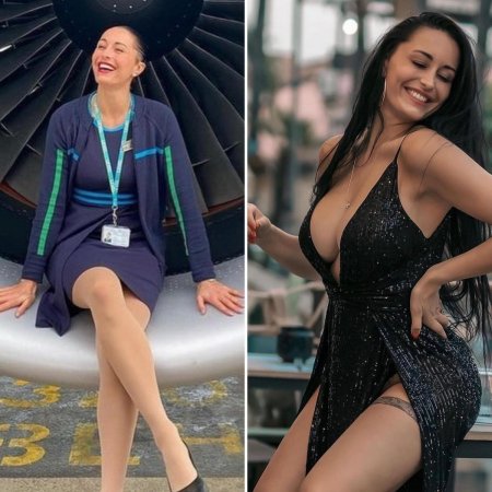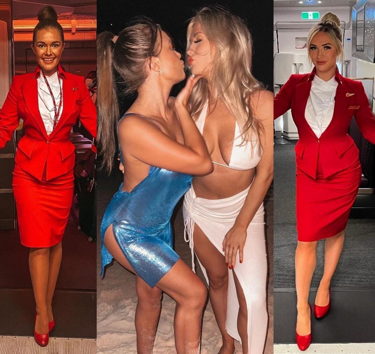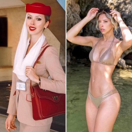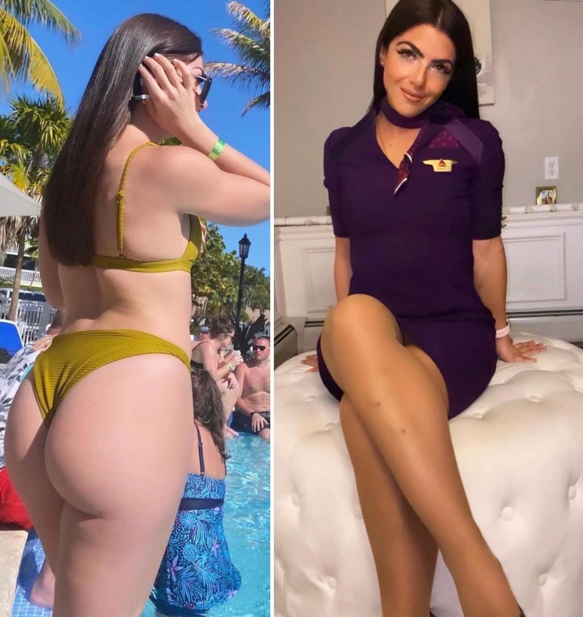 Стюардессы одетые и без одежды