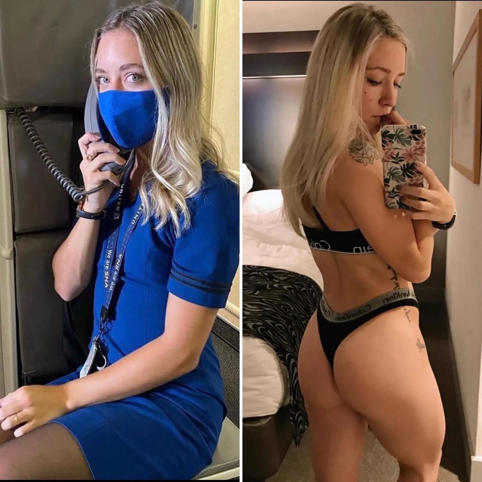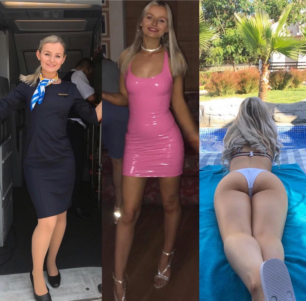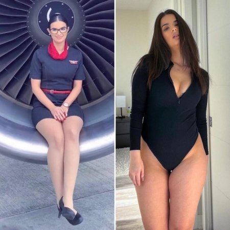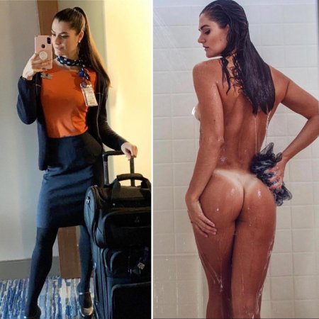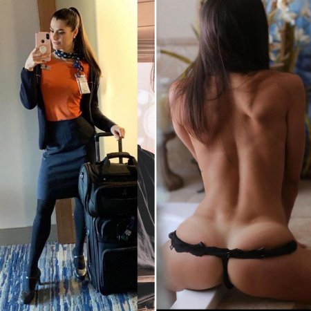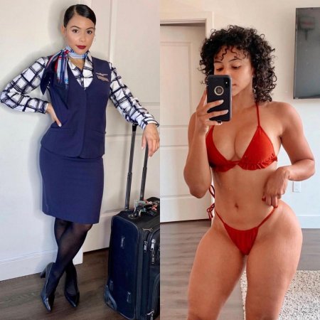 Одетая и раздетая стюардесса
