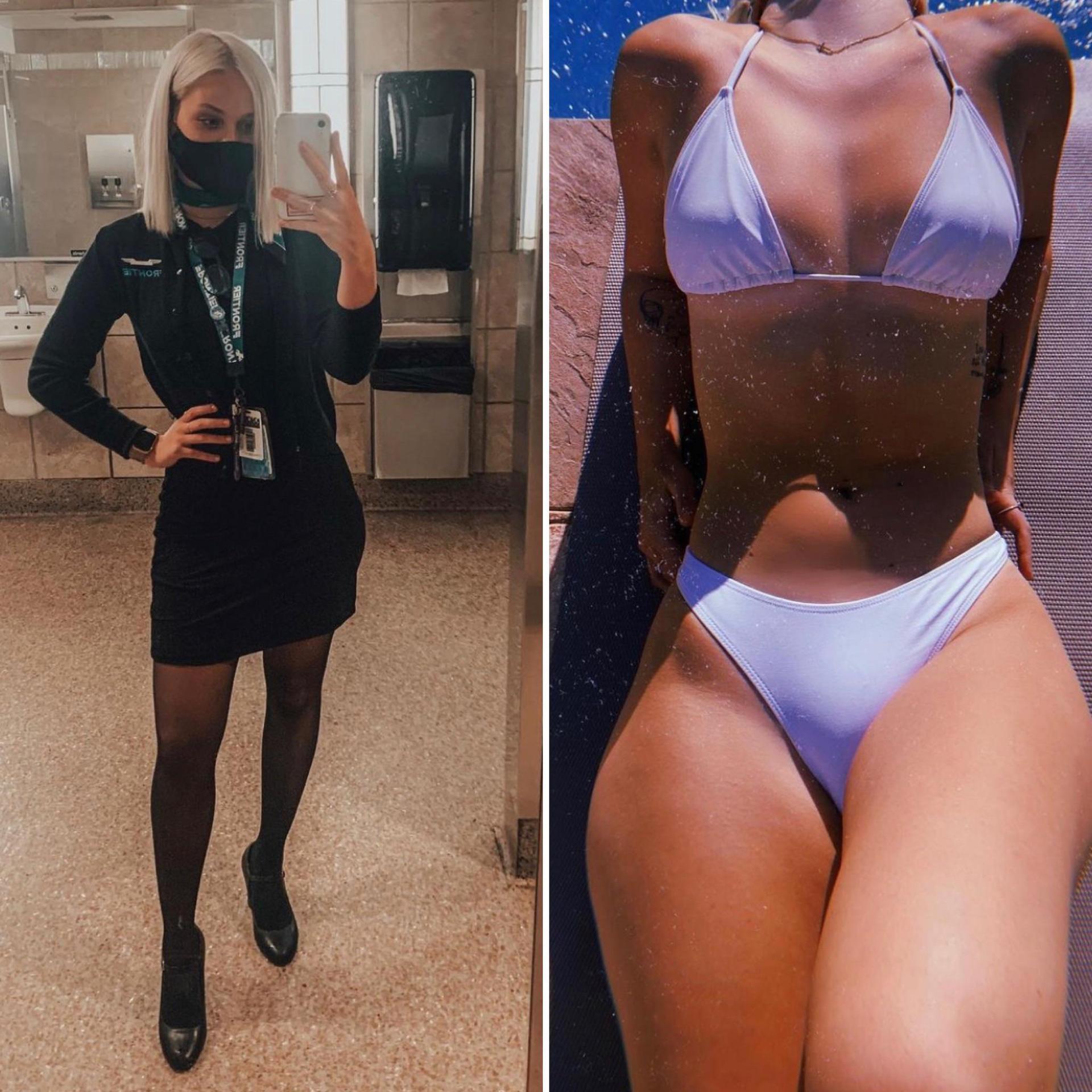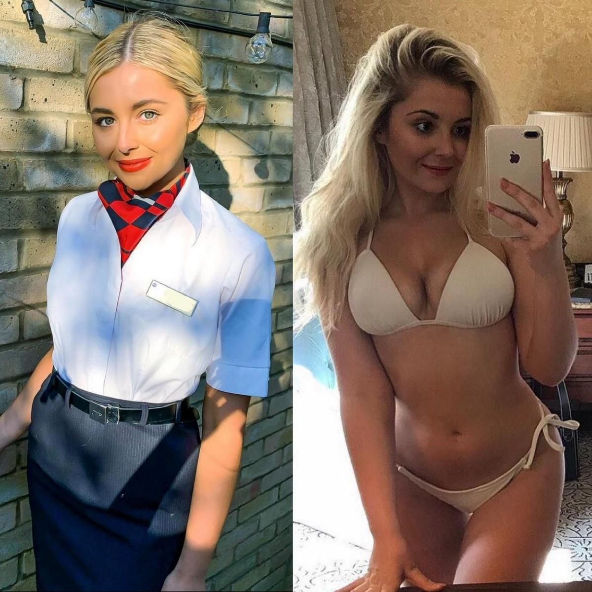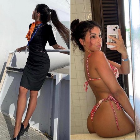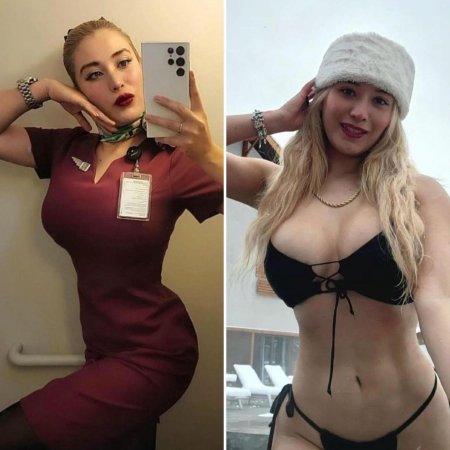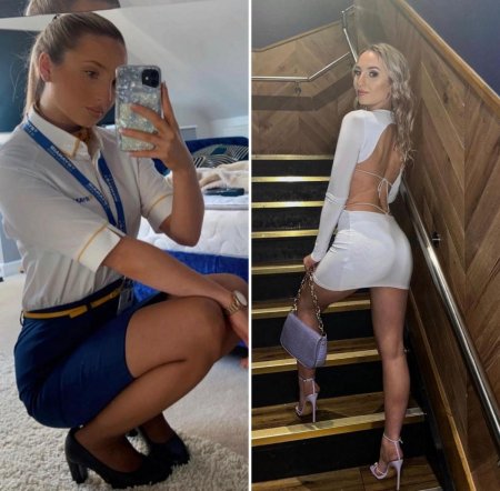 Одетая и раздетая стюардесса