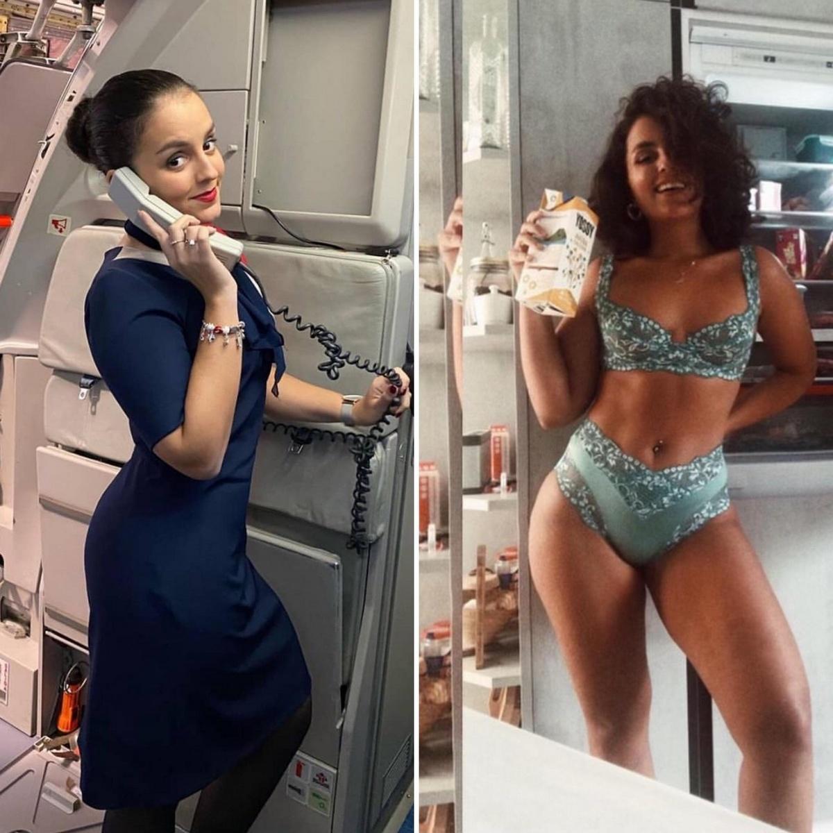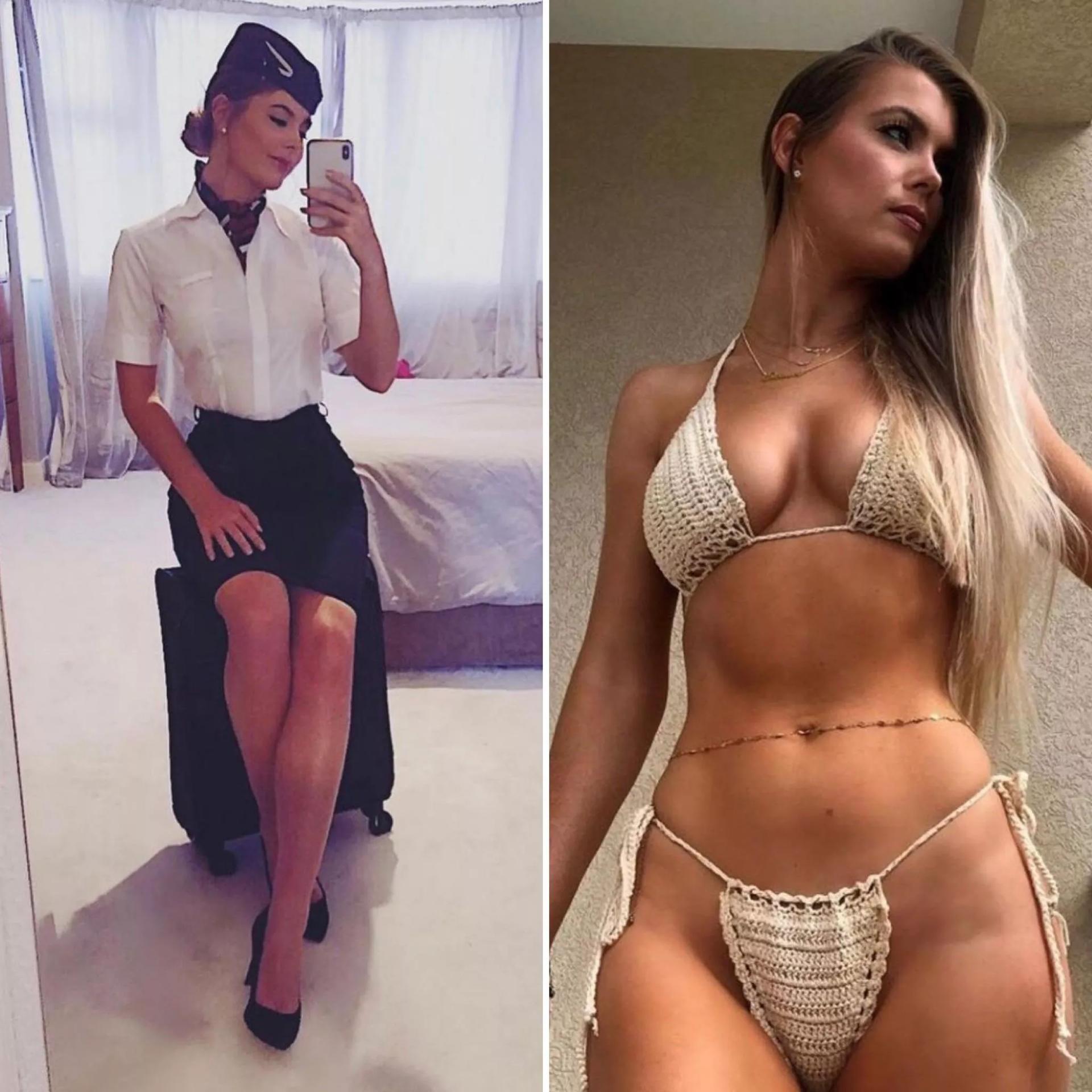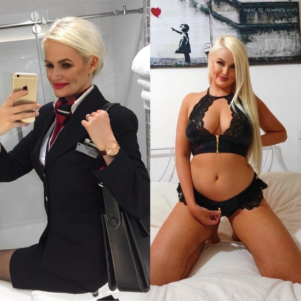 Стюардесса и бортпроводница одетые раздетые