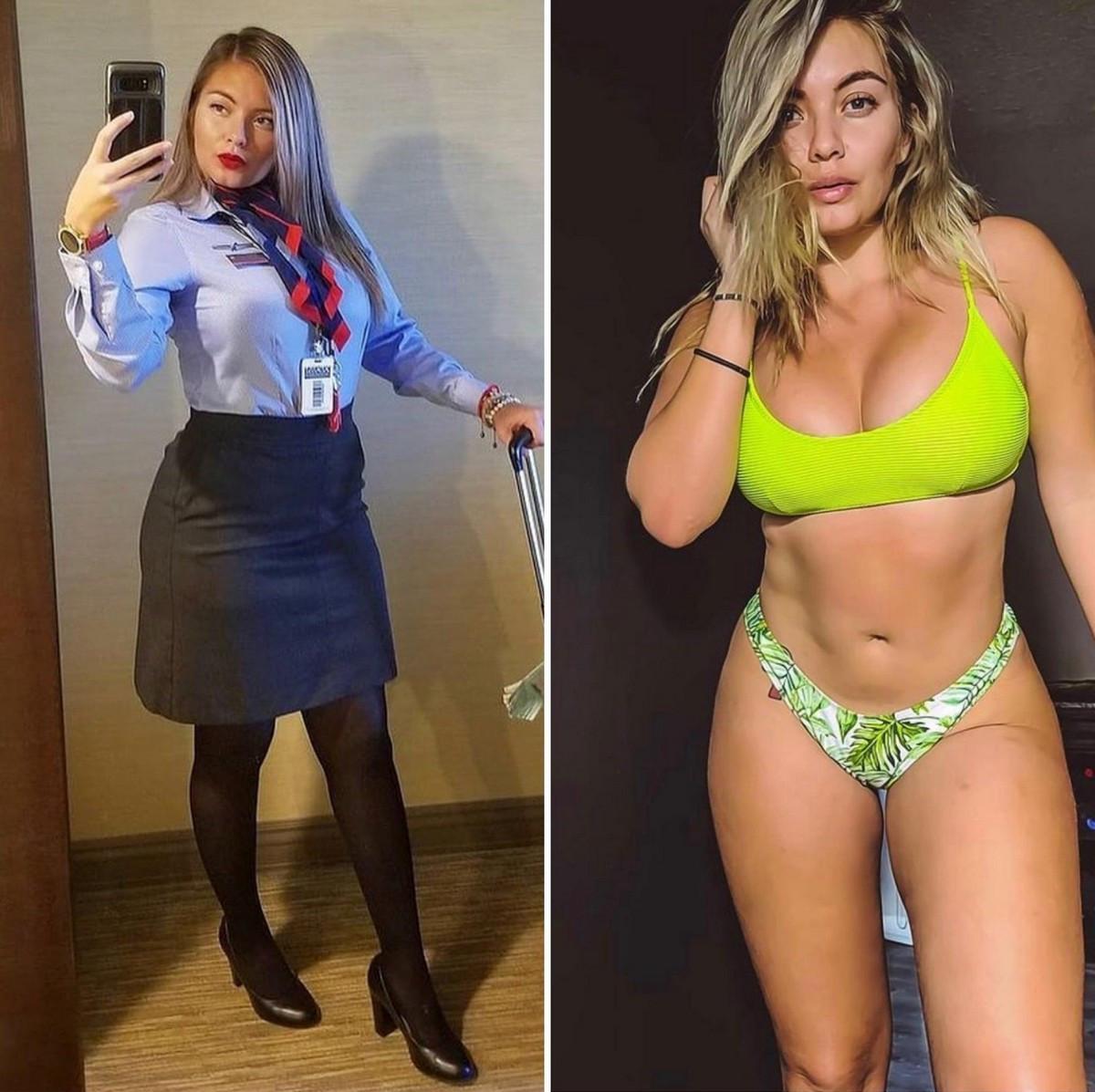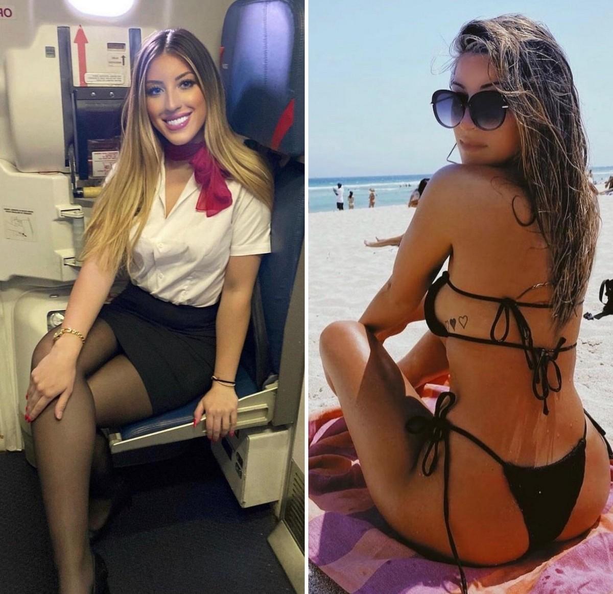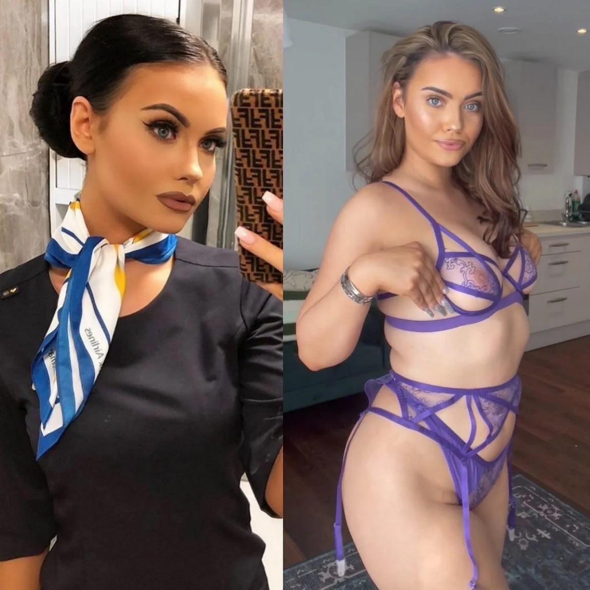 Стюардесса и бортпроводница одетые раздетые