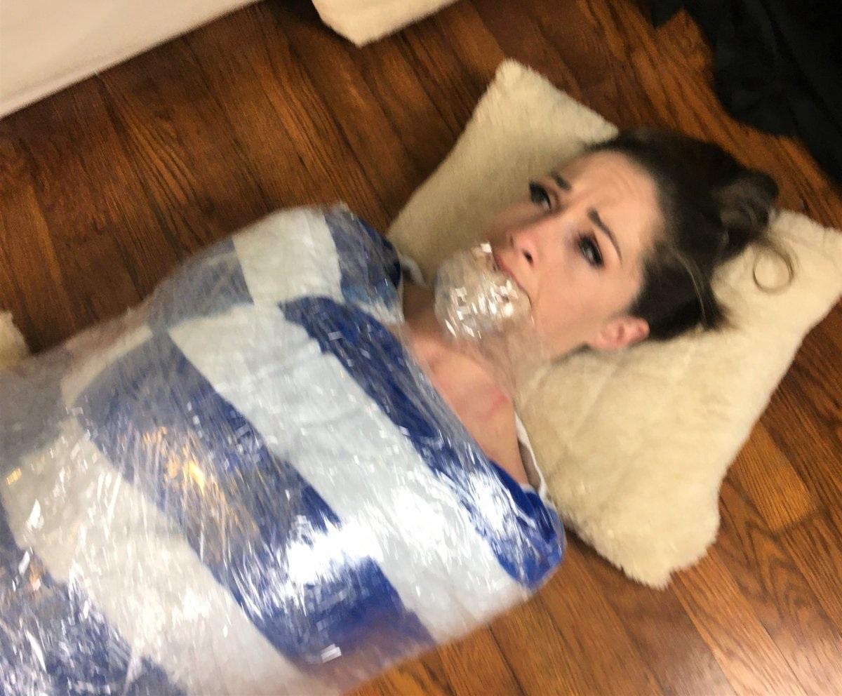 Замотанная в пленку голая