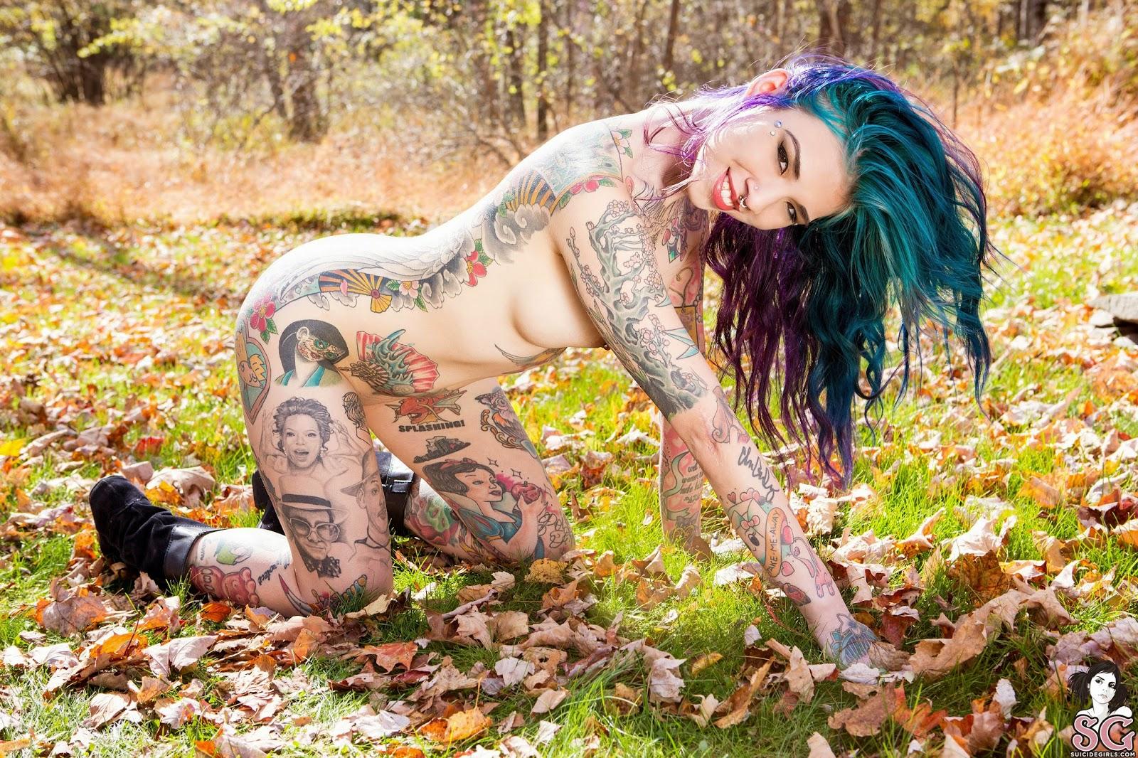 Голые девки с татуировками