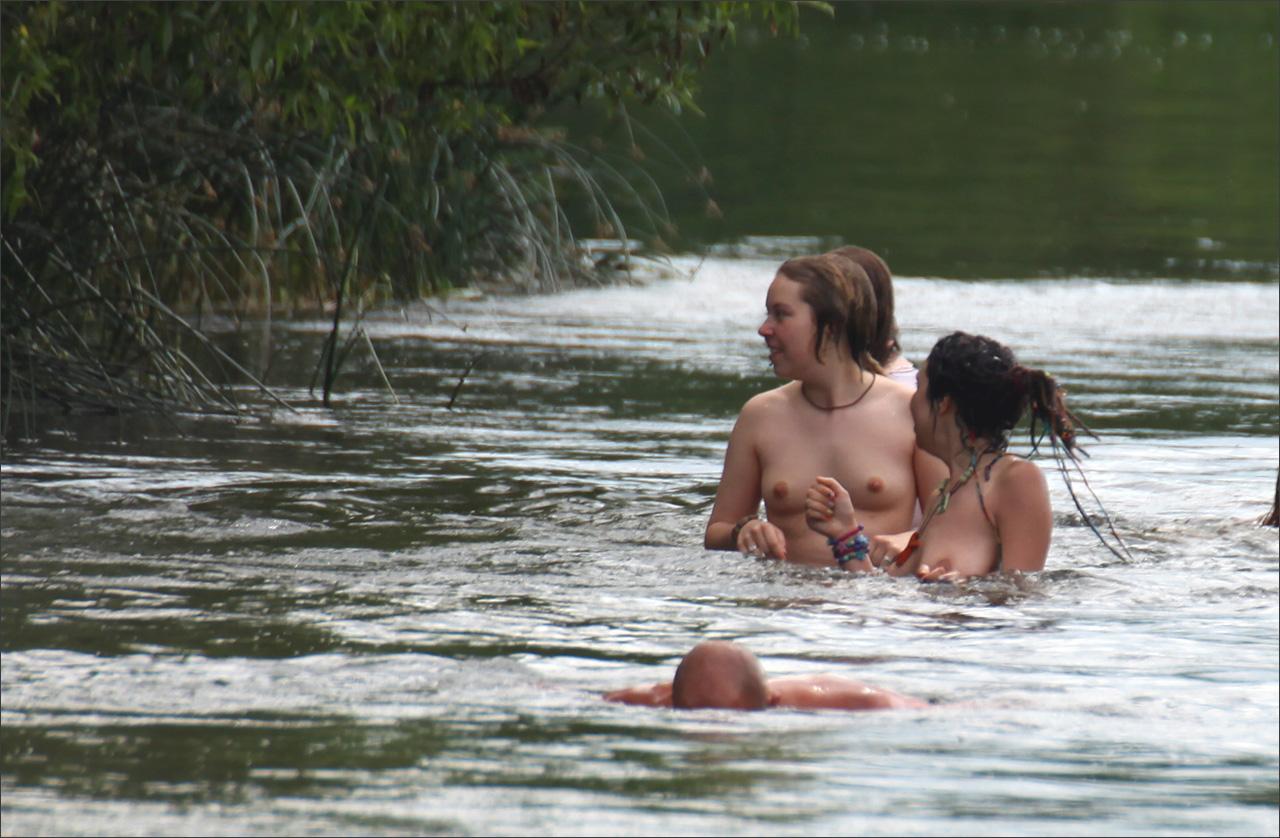 На речке голышом